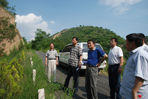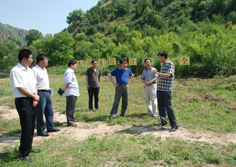 7月10日,黄河上中游管理局王健局长带领办公室、工程建设管理处负责同志专程到西峰局检查指导防汛工作。我局局长毛效嗣、副局长赵安成及防汛办公室负责人陪同检查。