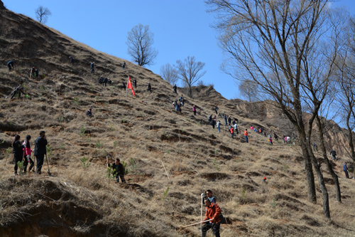 阳春三月,春光明媚,万物复苏。位于庆阳市西峰区显胜乡的蒲河村人头攒动,彩旗招展。根据庆阳市义务植树造林活动统一安排,上午9时许,西峰局机关及所属试验场(站)近90名干部职工来到指定的蒲河村义务植树点,义务劳动,植树造绿。