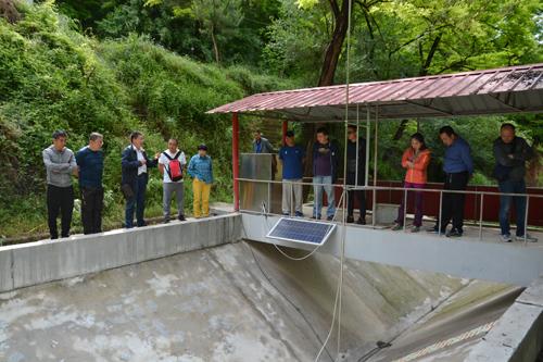 西峰局副局长刘斌带领考察组成员参观了南小河沟水土保持科技展厅、径流泥沙测站、优良品种育苗基地、花果山水库及十八亩台淤地坝等处,现场重点讲解了南小河沟六十年来水土保持基地建设及综合治理相关情况。同时,考察组成员后勤服务中心主任宫春旺结合自己曾在南小河沟工作过的经历,向考察组成员回顾了当年和南小河沟试验场职工一起艰苦创业、积极奋进的光辉岁月。