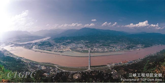 因最近在网上相继看到关于我国三峡工程建设与管理的一些相关文字和图片报道,再次勾起了我与三峡多次接触的一些回忆和遐想。特别是2004年10月中旬,因参加在三峡工程坝区(如下图)召开的、由我国政府主办的《第九次河流泥沙国际学术讨论会》和回程途经三峡库区的见闻和回忆。笔者此处忆谈以前到三峡和这次又到三峡的一些点滴印象和感受,除想表达一位基层水利工作者对祖国大好河山的深爱之情外,更期盼我国政府和人民在未来开发利用河流水能等资源的征程中,能够更加科学的注入“维持河流健康生命”的治河新理念。