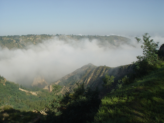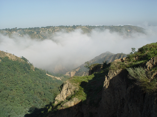 仲秋时节,笔者有幸目睹到被秋雾缠绕着的山沟沟的美景,置身此处,让人仿佛进入了一个梦幻般的世界,秋雾让这黄土沟沟显得更加静谧和美丽。