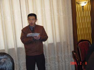 聚会开始,来自庆阳市林业学校的许明山同学首先代表同学们向辛勤培育教诲大家的老师表示了深切的谢意。他说,“毕业离开母校至今,前进道路上所取得的每一个进步,都是与在母校打下的坚实基础分不开。老师们把我们当作自己的孩子,无微不至地关怀、爱护使我们内心十分感激。禾苗成长靠园丁,滴水之恩当以涌泉相报。我们衷心感谢母校老师对我们的培养和教育”。接着,原环县一中校长、原环县政协主席刘尚绪代表参加聚会的老师说:“在环县一中,大家通过自身不懈的努力,实现了求学的夙愿;四年的大学深造,你们珍惜时光,勤奋刻苦,以优异的成绩完成了学业。如今你们基本上都已成为所在单位的中坚,有的担任了各级领导职务。你们取得的骄人业绩鼓舞着学校,你们为母校赢得了荣誉,老师为你们而自豪。老师衷心希望你们今后多加强联系,携手共进”。原环县一中老师、现任西峰区委书记陈玉蛟在聚会上发言说:“当年的教师如今都已鬓发苍白,当年的年轻学子现已步入不惑之年,80年代中期适逢国家急需人才时走出校园,十几年的努力拼搏成绩斐然。相聚是美好的,但却是短暂的,这短暂的聚会将永远留在我们的记忆当中。”他祝在座的老师春节快乐。年近八旬的李兆军老师也在聚会上发了言。
