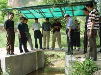 17日上午,考察团成员赴南小河沟流域考察。他们先后对南小河沟流域内的花果山水库、杨家沟测站、董庄沟测站、十八亩台测站,以及流域内布设的水土流失观测径流场、正在建设中的野外人工模拟降雨系统进行了详细考察。在考察中,他们详细了解了南小河沟流域水土流失监测站点的布设情况,查看了各个径流测站的观测设施,询问了观测的具体内容。并在南小河沟试验监测站站部与南小河沟试验监测站的工作人员进行了座谈。