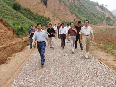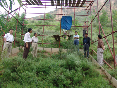 周局长一行察看了已建成的"模型黄土高原"“实体模型”----人工降雨装置和十六个不同坡度、植被标准试验小区,随后又对南小河沟流域原型观测的两条对比径流泥沙监测站及出口监测总控制站进行了检查。实地检查结束后,周局长在肯定了我局模型黄土高原“实体模型”前期建设工作成绩的同时,对今后的工作也作了具体详细的部署安排。