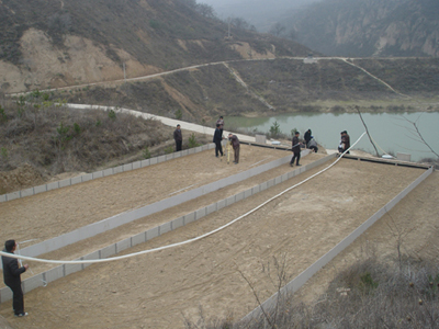 该项工程作为“模型黄土高原”实体模型建设重要组成部分之一,通过修建不同坡度、布设不同植被的径流场,利用人工模拟降雨系统进行水土流失规律的试验研究,一方面可以补充原有的径流场观测资料的不足,另一方面也为在更大坡面及小流域进行人工模拟降雨观测试验提供基本参数。径流场系统建设工程位于南小河沟流域湫沟试验区,从2004年6月6日正式开工,严格按照设计与合同规定的要求,经过4个半月的紧张施工,完成了16个径流场及其附属工程的修建。