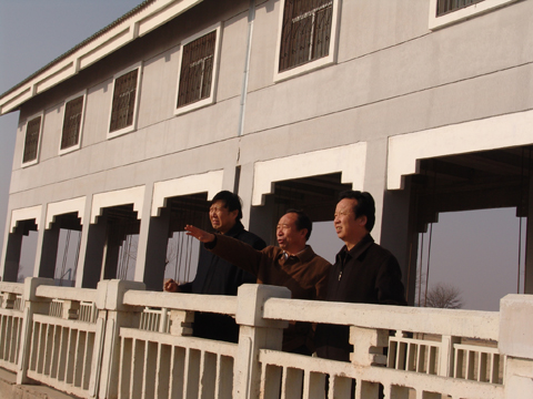毛局长、赵副局长同宁夏水利厅渠首管理处王副处长在调研现场