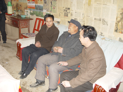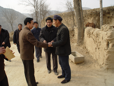 毛局长一行首先来到牛心行政村68岁的老共产党员弟浩有家。弟浩有一家七口人,由于家庭人口众多,土地广种薄收,信息不灵,造成家庭生活困难。毛局长详细询问了去年他们的家庭收入情况,鼓励他们在政府的领导和帮扶工作人员的帮助下,能尽早脱贫致富。弟浩有在接过毛局长送上的慰问金时,对组织的关心表示了深深的感激,他说:年关将至,党和政府忘不了他们这些生活在贫困中的老党员,心中感到十分温暖和激动。去年他们一家在西峰治理监督局帮扶工作人员的指导下,积极养畜,种植经济作物,收入比上年有了明显的提高。