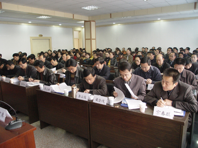 3月10日,西峰局会议现场座无虚席,气氛热烈。毛效嗣局长作了题为《与时俱进 艰苦奋斗 努力开创水保事业新局面》的工作报告,报告指出,2004年西峰局在示范区建设、科研工作、模型黄土高原建设取得了较大成绩;经济工作持续发展,确保了全年职工待遇的足额发放;党风廉政建设进一步加强,开展了以宣传“两个条例”为内容的宣传月活动,为保持党员先进性教育活动做了充分的准备工作;各项服务管理工作不断完善和创新,实现了办公自动化,全面完成了各项工作任务,被黄河上中游管理局评为目标管理先进单位。随后,毛效嗣局长分析了目前的形势和任务,指出2005年西峰局将认真贯彻落实黄河上中游管理局工作会议精神,以维持黄河健康生命为重点,以经济工作为中心,继续搞好各项科研工作,做好模型黄土高原、南小河沟科技示范园和齐家川示范区建设工作,搞好人员聘用制度改革;进一步开展保持党员先进性教育活动,保持艰苦奋斗的作风,努力建设和谐单位。明确提出了我局今年的九项重点工作,安排部署了2005年的各项工作。号召全局职工在新的一年携起手来,以昂扬向上的精神、求真务实的作风、严谨细致的态度,高效规范的管理,凝聚全局各方面的智慧和力量,充分调动和发挥干部职工的积极性,形成与时俱进,开拓创新,千帆竞发,百舸争流的奋进局面。为开创黄土高原水土保持生态环境建设事业和西峰局的美好未来而努力奋斗!
