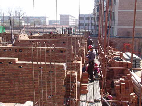 开春后(即2005年3月17日),经市质检部门组织,再次汇同有关各方,对6#住宅楼基础工程例行越冬复检,结果表明:该基础工程越冬管理做的比较完善,效果较好,符合规范要求。同意开工。于是从2005年3月24日起,6#住宅楼主体工程建设拉开了序幕。到2005年4月4日,一楼主体已拔地而起,其砖墙砌筑以及圈梁、构造柱的浇筑质量,均符合规范和设计要求,目前,主体一层即将完工。由此可以推断:“赶2005年国庆节,让住户搬进新楼!”的承诺,将如期兑现!