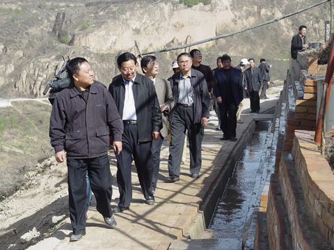 上午,李主任一行到南小河沟进行了实地考察。先后察看了位于湫沟的模型黄土高原野外“实体模型”试验区,并对正在建设中的野外人工模拟降雨系统进行了指导。随后,来到了素有“陇东第一坝”之称的十八亩台,李主任详细询问了南小河沟的原型观测情况。