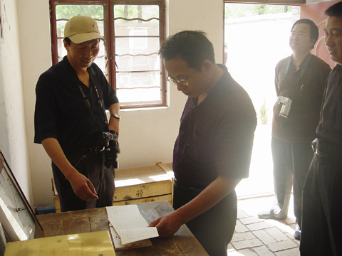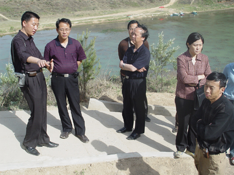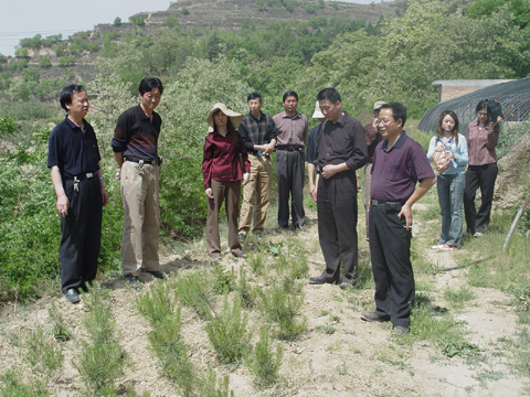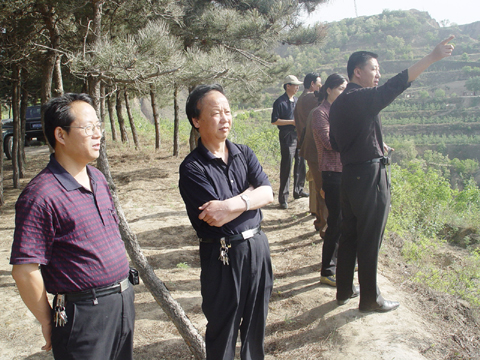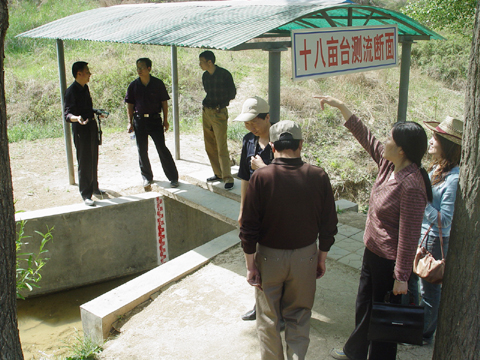 11日上午,检查组在我局毛局长、张局长及各课题负责人的陪同下赴南小河沟,实地查看了我局原型观测工作的进展情况。他们分别察看了正在建设中的模型黄土高原野外实体模型、径流测站以及南小河沟苗圃。在检查杨家沟、董庄沟和十八亩台测站时,中游局国科处贾泽祥副处长还认真察看了水文测站人员记载的水文观测资料,并询问和了解了今年以来的降水情况,他一再强调要做好汛前观测的准备工作。在检查苗圃项目时,贾处长要求要及时做好各苗圃的抗旱保苗工作。