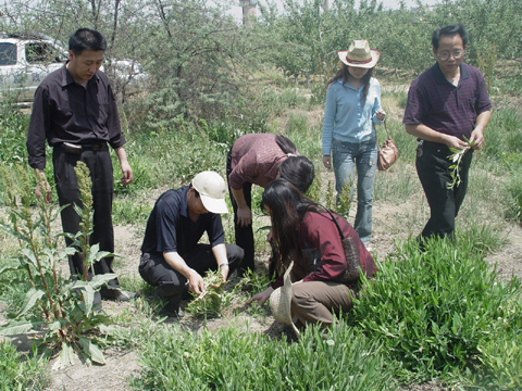 下午,他们检查了黄河水土保持生态工程齐家川示范区科研项目《水土保持优良植物示范及推广》课题的试验研究情况,检查组仔细察看了引种的美国香豌豆、牧场草、黑核桃等草本植物的生长状况,并建议要做好技术推广工作。随后,他们检查了冯堡苗圃,冯堡苗圃的苗木长势良好。最后,他们驱车赶往位于董志乡的崔沟示范村检查了齐家川示范区科研项目《齐家川示范区径流高效利用技术体系研究》项目研究的进展情况。