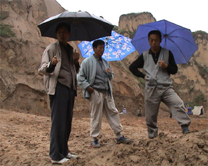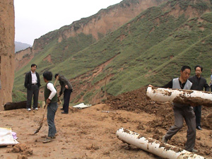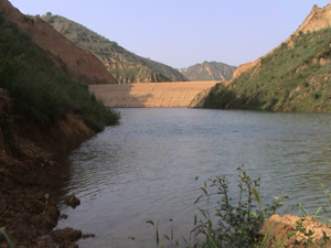 [金剑同志(右一)陪同我局赵安成副局长(左一)在淤地坝施工现场]