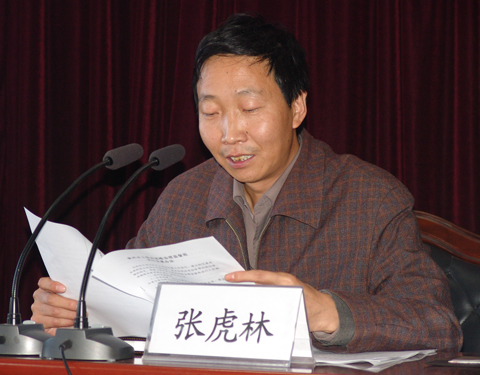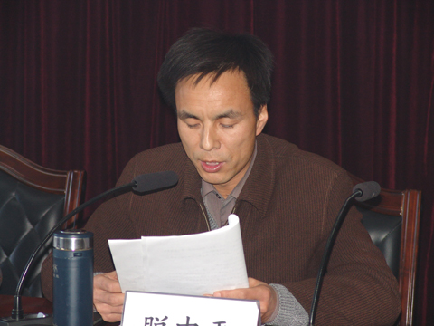 副局长张虎林宣布西峰治理监督局《岗位设置办法》、《人员竟聘上岗办法》