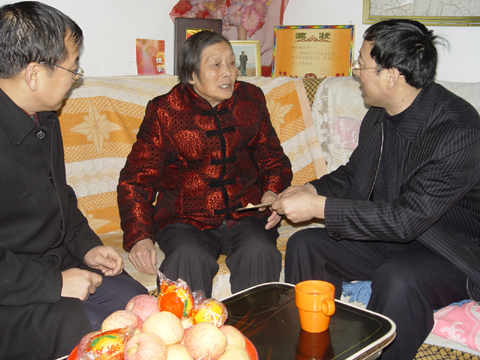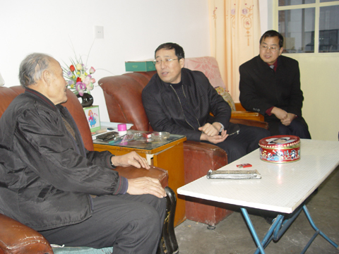 李副局长等领导一到我局,顾不上旅途的劳累,先后到宋尚智、田怀银、王心荣、曹永恒、林志超等老领导、老革命、老职工家中,亲切看望了他们并赠送了慰问品和慰问金。李副局长在老同志家中详细询问了他们的晚年生活情况,转达了上级领导的问候和祝福,并拜个早年,祝愿他们生活愉快,身体健康,合家欢乐。