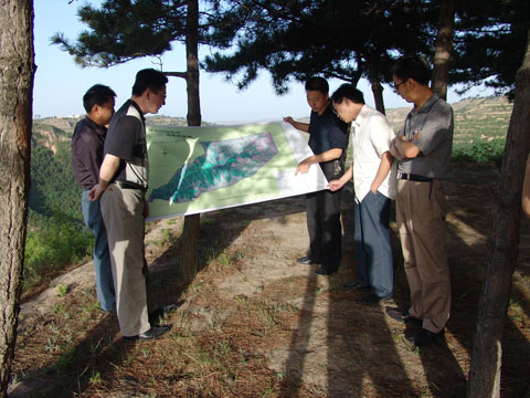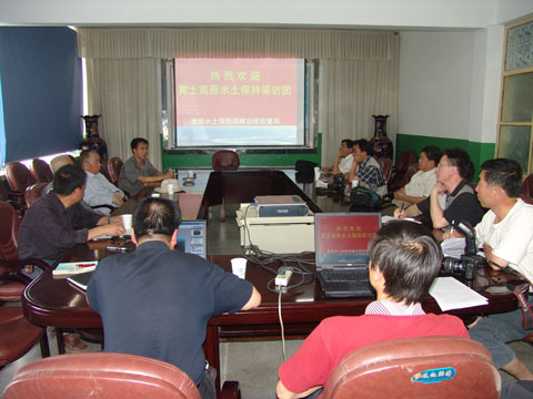 采访团先后深入南小河沟下马山、花果山、杨家沟、董庄沟、十八亩台及齐家川示范区崔沟径流高效利用示范村,用镜头、文字记录下了各个采访点治理后的不同变化,并与当地农民进行了深入交谈。在座谈会上,副局长脱中平向采访团介绍了西峰局的基本情况、五十五年来取得的成绩以及西峰局未来的发展方向和前景。座谈中,采访团对南小河沟花果山水库建设、杨家沟林草治理、齐家川示范区建设等表现出浓厚的兴趣,并重点采访了 “陇东第一坝”建设者之一宋尚智及 “杨家沟林草治理”参与者杜百正两位老同志。