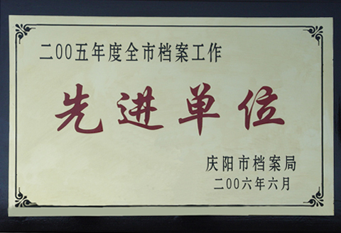 6月23日,在庆阳市组织召开的全市档案工作会议上,我局由于示范档案建设、档案管理升级、年度整理归档等工作成绩显著,被评为“2005年度全市档案工作先进单位”。据悉,此次共有10个单位获此表彰。