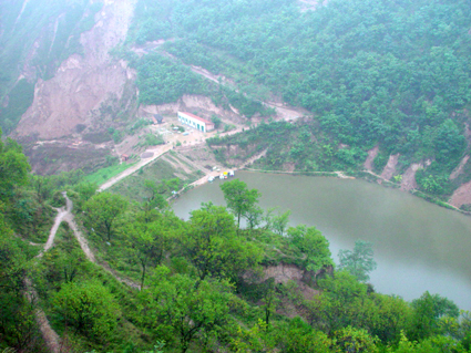 宁县周郭骨干坝,控制面积9 km2,库容96万m3,1999年建成之后,就起到了很好的拦沙、淤地、调洪作用。截止目前,坝库内已蓄水养鱼11万尾,灌溉塬面果园450亩,解决了坝区周边2000多人及1000多头大家畜的饮水问题,并且实现了植被恢复、山清水秀、气候宜人,生态环境、经济工作、社会事业得到了持续协调的发展。