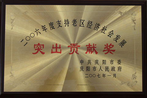 支持老区经济社会发展突出贡献奖是庆阳市委、市政府设立的,其目的在于表彰"坚持发展是第一要务,人在庆阳、心在庆阳、建功立业在庆阳,全力支持庆阳市的各项建设事业,为庆阳市经济社会全面提速、加快发展做出了积极贡献"的驻庆单位。西峰局由于为当地全面建设小康社会和社会主义新农村提供了一定的基础支撑和生态保障,在驻庆单位评选中脱颖而出。