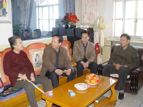 黄河水土保持西峰治理监督局历来关心离退休老干部的生活,在新春佳节来临之际,2月14日下午,党组书记、局长毛效嗣,党组成员、副局长赵安成、脱中平、刘斌,党组成员、工会主席陈大兴带领有关同志,走访看望了我局部分离退休干部,了解了他们的生活情况和实际需要,并送去节日慰问金。