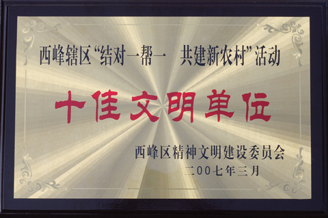 2007年4月2日,我局在西峰区建设文明会议上,被评为西峰辖区“结对一帮一,共建新农村”活动十佳文明单位。