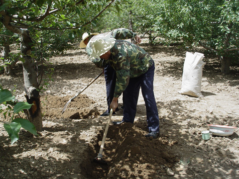 今年开春以来,由于持续干旱,连续几个月没有有效降雨,严重影响了果树的正常生长。而5月份正是苹果幼果膨大期,对肥水的需求很敏感。5月30日的一场降雨,使旱情得到了缓解。董志场职工紧抓时机,加班加点,在两天之内给果树追施了复合肥和硫酸钾等肥料,为正在膨大期的幼果补充了营养。