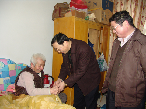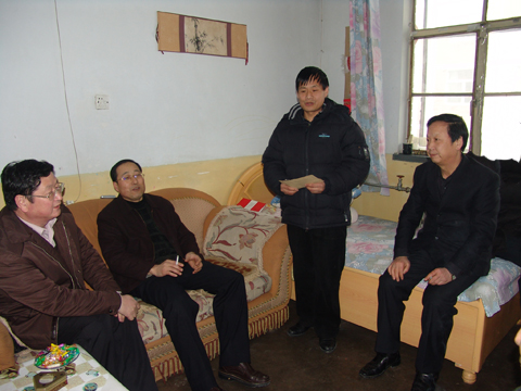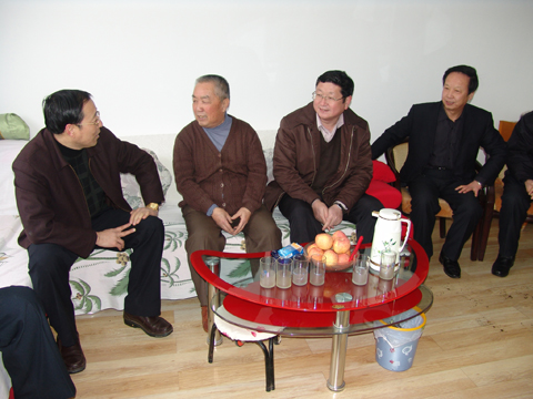 下午,李局长、王局长在我局党组书记、局长毛效嗣、党组成员、副局长赵安成、脱中平及人劳科科长刘伟的陪同下,不顾旅途劳累,一下车就看望了我局部分离退休老干部和贫困职工,送去了慰问金,并代表黄河上中游局党组祝他们身体健康、春节愉快!