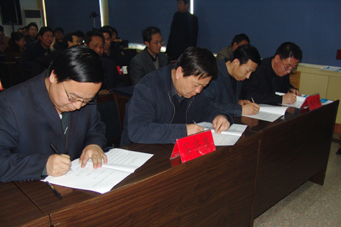会上局班子领导成员与各自分管的单位(部门)签订了2008年度目标管理责任书和安全生产目标管理任务书。