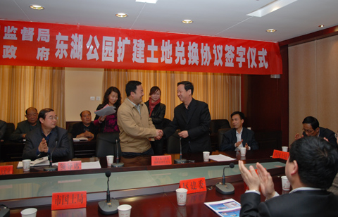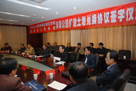 2009年3月26日上午11时,黄河水土保持西峰治理监督局与西峰区人民政府在庆阳宾馆五楼会议室举行了关于东湖公园扩建土地兑换协议签字(草签)仪式。