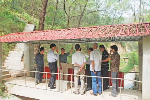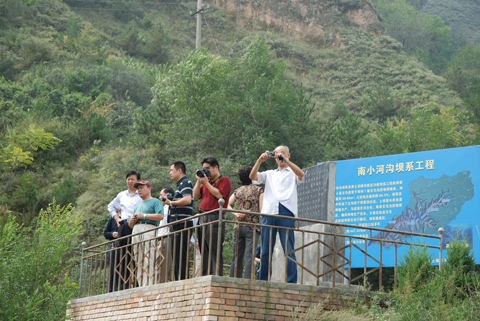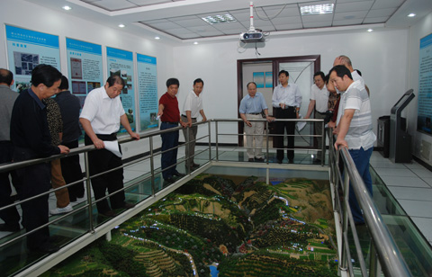 随后,调研组一行在西峰治理监督局局长毛效嗣、副局长赵安成等陪同下,专程到南小河沟试验监测站对南小河沟科技展厅,杨家沟径流测站、花果山水库、“模型黄土高原”野外人工模拟降雨试验小区、气象园、苗圃及局机关等基础设施建设情况进行了实地参观考察。黄自强副主任及随行的委、局老领导大多曾多次到过西峰局及南小河沟检查指导工作,对这里一草一木极为熟悉,这次重回故地,看到经过几代人的辛勤付出而倾力打造的南小河沟流域,成为闻名全国的水土保持小流域综合治理样板,非常高兴,尤其对南小河沟开创的科学试验、技术示范、科普教育和生态旅游四个基地所取得的成绩及西峰局近年来的发展给予充分肯定。