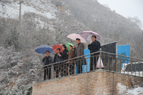 高健翎副局长一行冒着雨雪来到南小河沟试验监测站,实地详细察看了花果山水库、“陇东第一坝”及南小河沟水土保持科技展馆等,听取了我局关于“两项”前期工作的汇报,对我局所做的工作给予了充分肯定,并就存在的问题进行了深入研讨,对下一步工作提出了指导性意见。