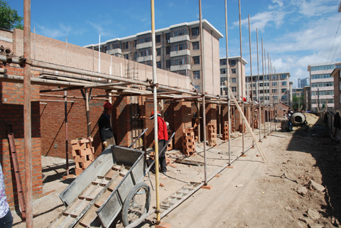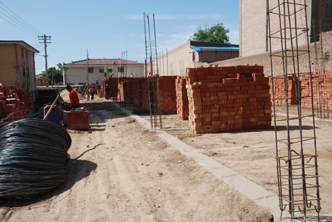 职工活动室位于我局家属区南侧,由于原有的活动室建于上世纪70年代,破损严重,存在严重的安全隐患。为丰富职工的精神文化生活,保障职工的基本文化权益,营造广大职工共建共享和谐单位,改善职工文化生活条件,我局决定拆除旧活动室并在原址新建两层砖混结构单面楼,作为新的职工活动室。目前,该工程施工场地已完成三通一平基础建设,正在进行一层主体楼房砌墙工程,建设按序时在今年内完成任务。该项目竣工后,总建筑面积1019.2平方米,其中包括在职和离退休职工活动室、单身职工宿舍、健身房、家属区管理中心以及相应的服务用房。