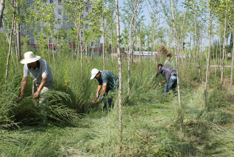 进入盛夏以来,西峰地区降雨量比同期明显偏多,充足的雨水也使东湖试验场世纪大道苗圃里的杂草格外茂盛,甚至与人齐高,严重影响了苗木的正常生长。 近日,该场组织职工,冒着酷暑,挥舞镰刀,奋战数日,割除了苗圃杂草。“突出重围”的苗木,清新亮丽,精神抖擞,茁壮成长。