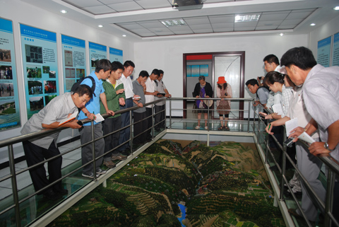 考察团先后考察了我局南小河沟水土保持试验场等地,重点参观了南小河沟流域沙盘模型、自动化气象园、沟头防护工程、“陇东第一坝”、原型观测径流泥沙测站、大型野外人工模拟降雨系统等,了解了我局水土保持原型观测及综合治理情况。