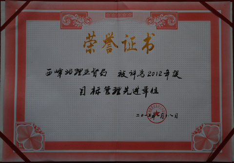 1月18日,在黄河上中游管理局2013年全局工作会议上,西峰治理监督局荣获2012年度目标管理先进单位。