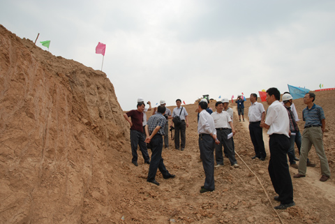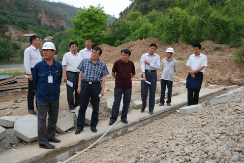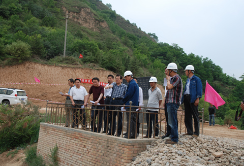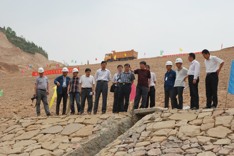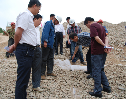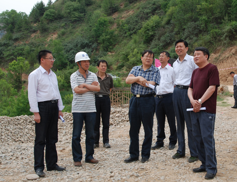 在现场听取了施工、监理、业主等单位的汇报后,王健局长、张金良总经理又来到背水坡碾压现场及坝脚反滤体处进行检查。随后,在现场项目部与各参建单位进行了座谈。座谈中,张金良总经理首先代表设计公司对参建单位人员表示了亲切的问候。并要求总承包项目部在工程建设中要尊重业主和监理方,参建各方各司其责,紧密配合,合理打造优质工程。王健局长在讲话中对设计公司的大力支持和关心表示感谢,并要求西峰局要竭力为施工单位做好各项服务工作,保障除险加固工程建设任务的圆满完成。他强调,在建设过程中,各参建单位要严格按照工程设计要求和工程规范、规程、规定科学施工,确保工程质量。要进一步优化施工方案,在确保工程质量和人员安全的前提下,千方百计想方设法加快工程建设进度,确保在2013年6月底完成主体工程,具备度汛条件。同时,他要求要根据进度情况及时修订应急度汛方案,提早准备防汛物料,加强培训演练,做好各项准备,确保花果山水库安全度汛。