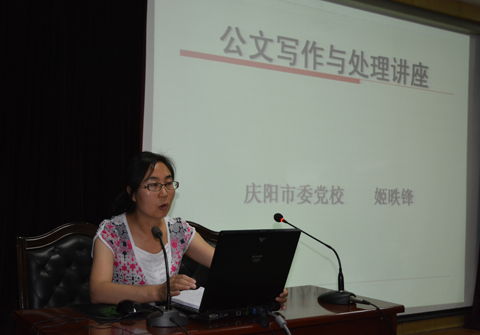 为进一步加强和规范公文工作水平,6月24日,西峰治理监督局特邀请庆阳市委党校科研中心主任姬昳锋副教授,就公文写作与处理问题进行了专题讲座。此次讲座由西峰局副局长脱忠平主持,全局职工85人认真聆听了讲座。