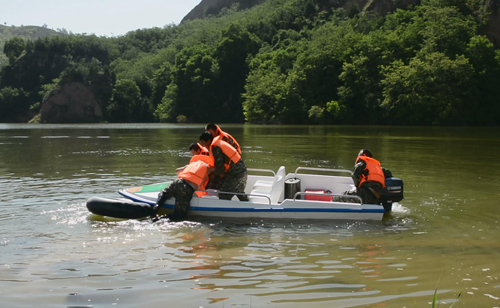 演练人员携带防汛器材和物资,在防汛技术负责人的指挥下,先后现场演练了防汛应急反应、应急供电照明、水上救援和堵大坝缺口四个科目。在本次演练中,队员们都充分发挥了主观能动性,积极的开展自己的工作。特别是现场应急设备安装队员,以其娴熟的组装操作技能,在极短的时间内保证了抢险照明工作的顺利开展。