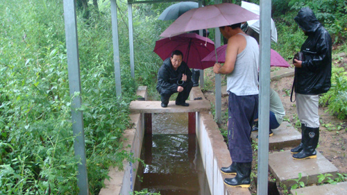 7月18日14:30,南小河沟水土保持试验场领导班子带领职工,冒雨下水土流失规律试验监测站、花果山水库、淤地坝巡查,“查隐患、保安全”,履行使命,安全度汛。