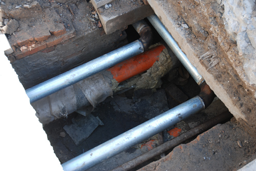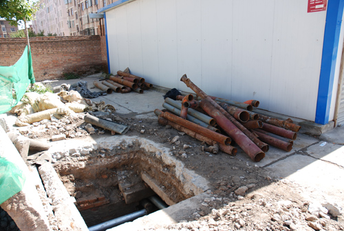 维修合同签订以后,西峰局后勤服务中心派专人放弃国庆节假期,加班加点现场负责施工,切割拆除原有地沟90m主管道及支架;制做安装主管道支架,焊接安装原有管道;对管线进行防锈和保温处理;清理外运地沟淤泥垃圾。