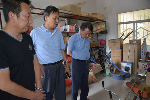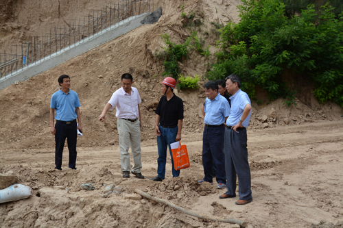 王健一行一到西峰就直奔花果山水库防汛物资仓库,检查物资保障到位情况。站在库坝顶,实地考察询问坝前蓄水、库岸坍塌、卧管运行状况和安全管理措施。随后,来到十八亩台骨干坝除险加固施工现场,先后听取了建设单位和施工单位的情况汇报,查看了工程实体进度和质量,指出了工程安全度汛存在的突出问题和薄弱环节。检查结束时,王健就地召开了办公会,明确指出:
