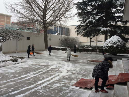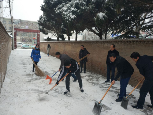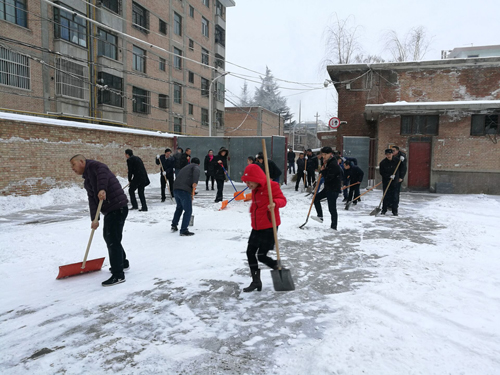 1月3日,庆阳市迎来2018年首场降雪,大地万物银装素裹,道路积雪严重。为保证广大职工家属出行安全 ,1月4日一大早,西峰局全体职工在单位领导的带领下自觉积极开展扫雪除冰活动,对院内的路面积雪进行清理,为职工群众提供了便利。