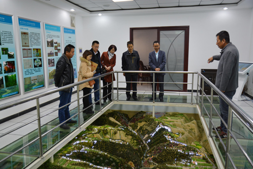 调研组一行在西峰局副局长刘滨、规划设计院院长张鉴等有关人员的陪同下,深入南小河沟试验场,参观了南小河沟科技示范园内的水土保持科技展馆、水土保持气象园、陇东第一坝、径流泥沙测站、花果山水库等。