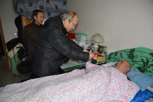 慰问组一行看望慰问了退休职工杜百正、张志义同志,感谢老同志们为西峰局各项工作做出的贡献,希望老同志好好保重身体,过上一个欢乐、祥和的新春佳节。在退休职工刘岱家中,谢军与躺在病榻上的刘岱亲切握手,详细询问了生活起居和身体健康状况,勉励要坚定战胜疾病和困难的信心、相信组织会帮助排忧解难,要以积极乐观的心态面对生活。