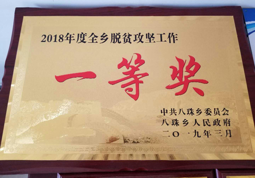 2019年4月3日,在环县八珠乡2019年经济工作会议和产业大会上,西峰局帮扶的杏树沟村荣获2018年度全乡脱贫攻坚工作一等奖。
