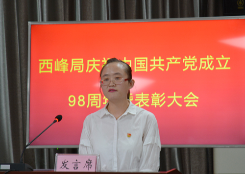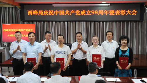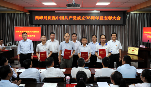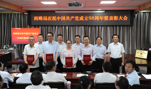 7月1日,西峰局召开全体党员大会,隆重纪念中国共产党成立98周年,并表彰在近年来工作成绩突出的先进党支部、优秀共产党员和优秀党务工作者。