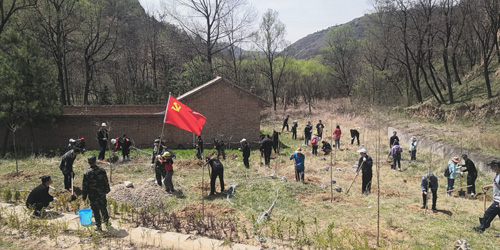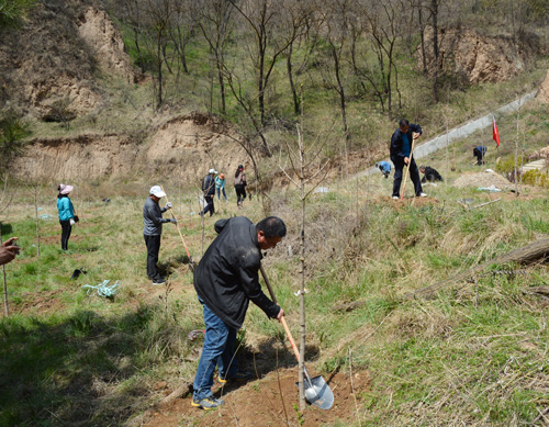 上午9时许,全体人员集中乘车来到南小河沟马山,在青联和工会工作人员的组织下合影留念,并对活动的流程、分组及人员分工等进行介绍和安排。本次活动主要有三项内容:一是全体党员在马山造林点栽植“党员林”;二是青联委员组织干部职工由马山出发,徒步前往十八亩台开展健步行活动;三是全体人员到达十八亩台造林点栽植“青年林”。