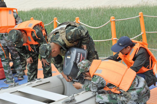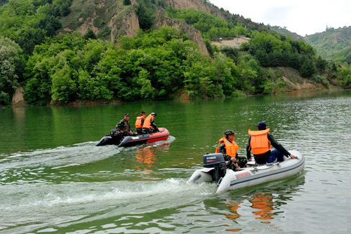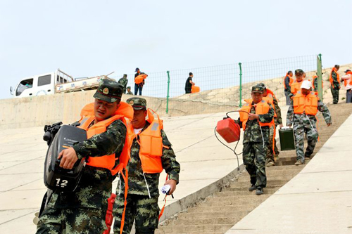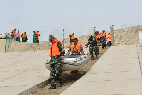 演练主要针对汛期花果山水库发现险情,防汛车辆以最短时间将人员及所需物资运到水库险情地点;水库水位达到汛限水位时及时按防汛应急预案程序启动倒虹吸系统,降低水库水位至讯限水位以下;启动汽艇、橡皮艇对水域周边进行安全隐患排查。全体参训人员以高度的热情、饱满的精神状态,圆满完成了演练的全部内容。