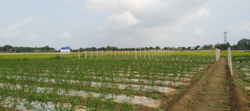 李家寺“职工菜园”平坦的菜地绿意盎然、整齐的田垄层次展开,全场职工精耕细作、辛勤劳动,采用优良蔬菜品种,先后种植了早熟玉米、辣椒、西红柿、黄瓜、茄子、葫芦等绿叶蔬菜,在大家的精心管护下,蔬菜叶片肥绿,长势喜人。