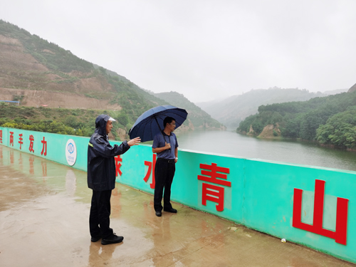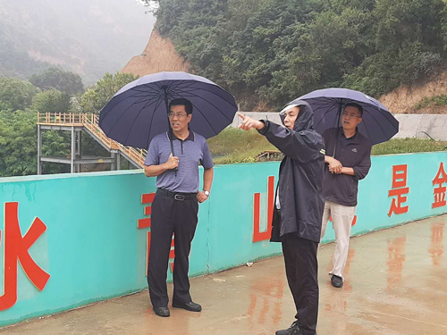 马永来冒雨来到南小河沟,检查花果山水库汛期安全管理工作,了解水库放水建筑物封堵工程有关情况,询问虹吸管设施运行状况,检查防汛值班记录和防汛物资,察看防汛道路修复工程,看望慰问一线防汛人员。